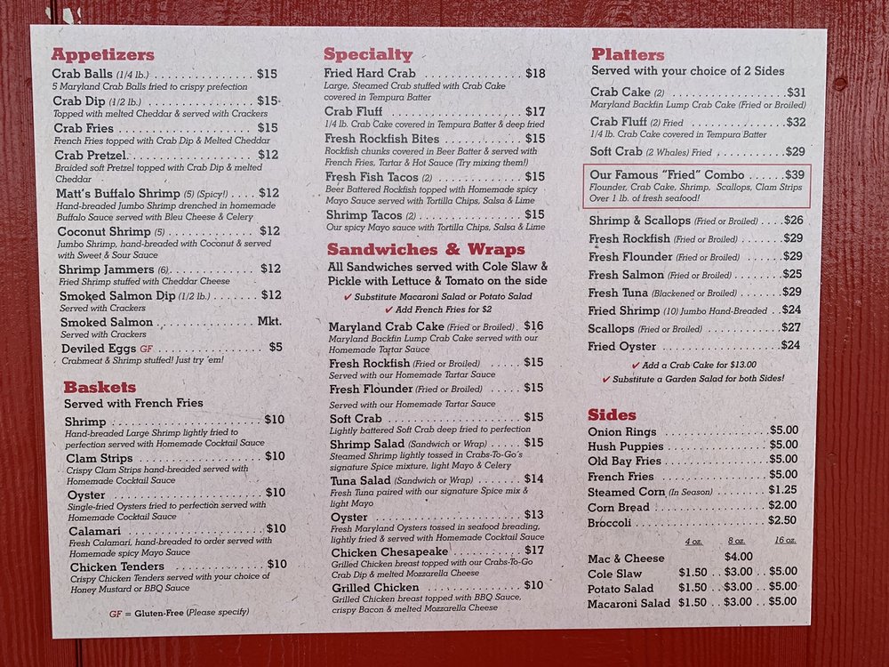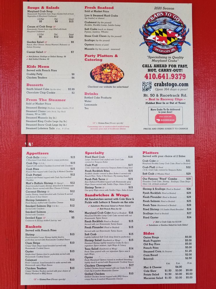 Introducing the menu at Crabs To Go, a seafood restaurant located in Berlin, MD, offers a wide range of dishes that have impressed customers. From delicious crab cakes and Maryland crab soup to creamy crab soup and broiled scallop platters, the menu is sure to tantalize your taste buds. Customers rave about the sweet and juicy crabs, excellent crabmeat, and perfectly cooked scallops. The pricing may be on the higher side, but the quality of the food makes it worth every penny. With options for takeout, reservations, and catering, Crabs To Go provides a convenient and enjoyable dining experience. The relaxed beach shack vibe and top-notch service add to the overall charm of the restaurant, making it a must-visit spot for seafood lovers. Don't miss out on the opportunity to savor the flavorful dishes at Crabs To Go next time you're in the area.
